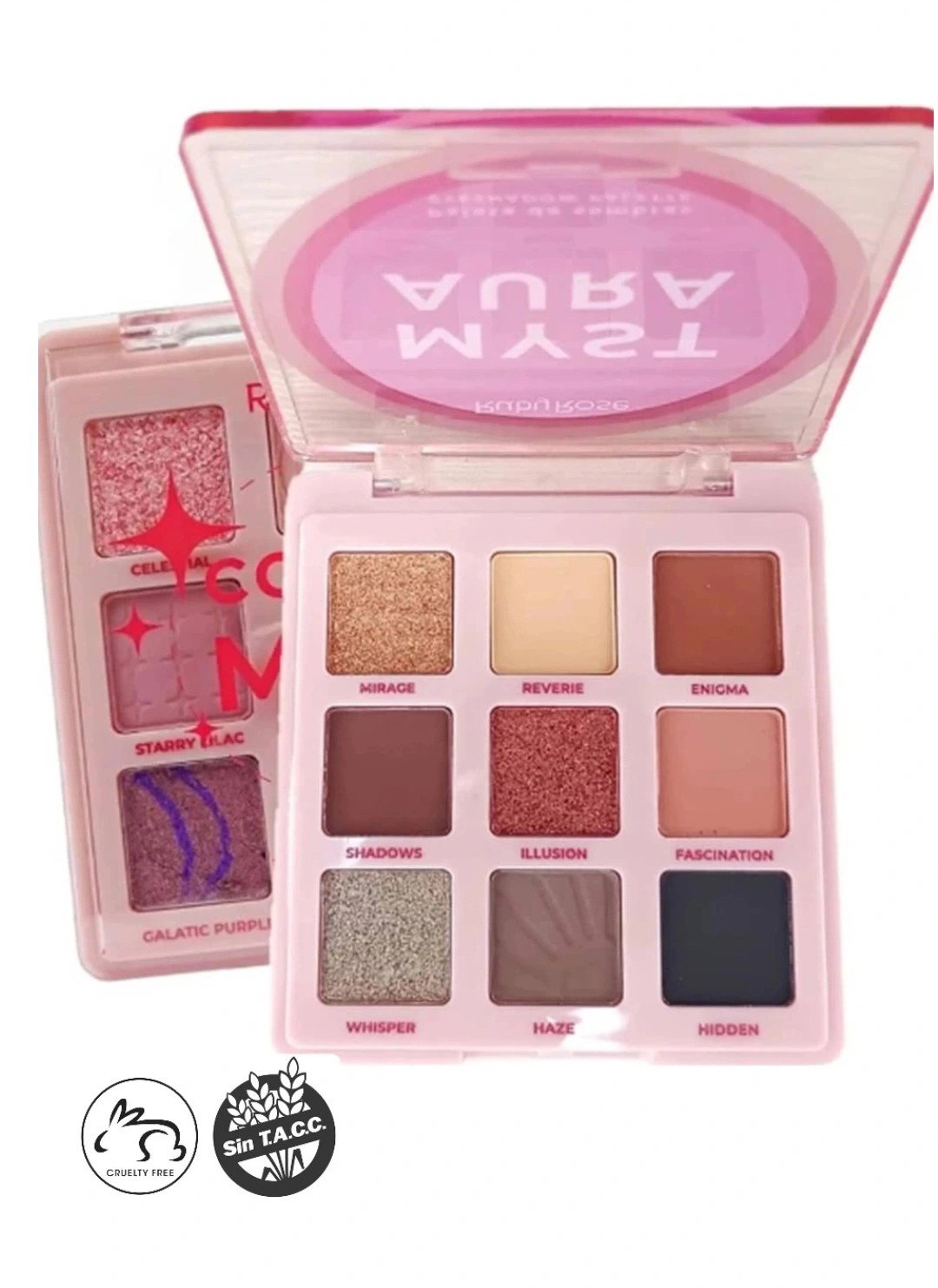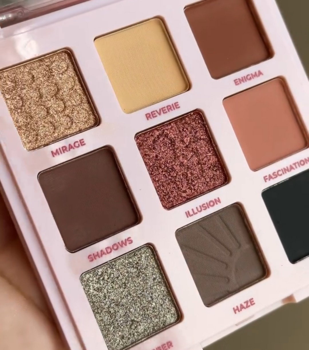 La paleta viene con 9 sombras que varían entre tonos dorados y cobrizos.
