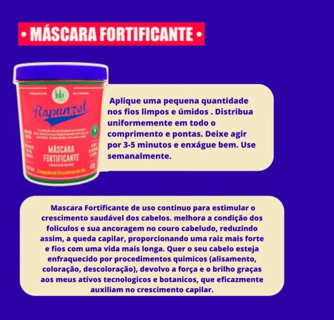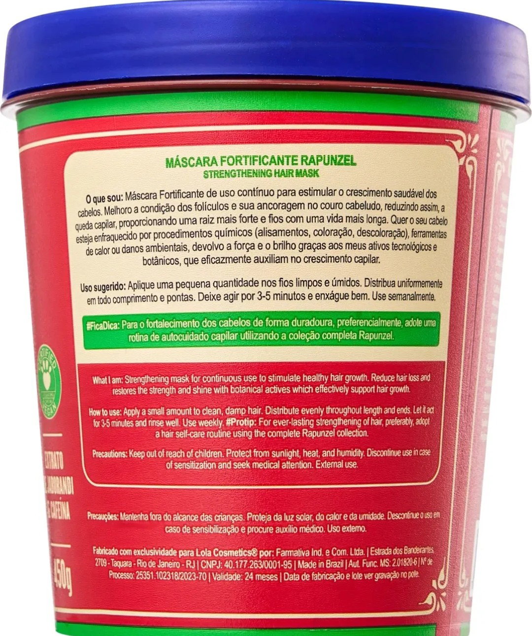 MODO DE USO: Luego del lavado con shampoo aplique de largos a puntas uniformemente por todo el cabello, deje actuar durante 20 a 25min, utilice gorro térmico para potenciar su acción. Enjuague con abundate agua y finalice con sus productos habituales. Para mejores resultados utilice la linea completa Lola Cosmetics Rapunzel.