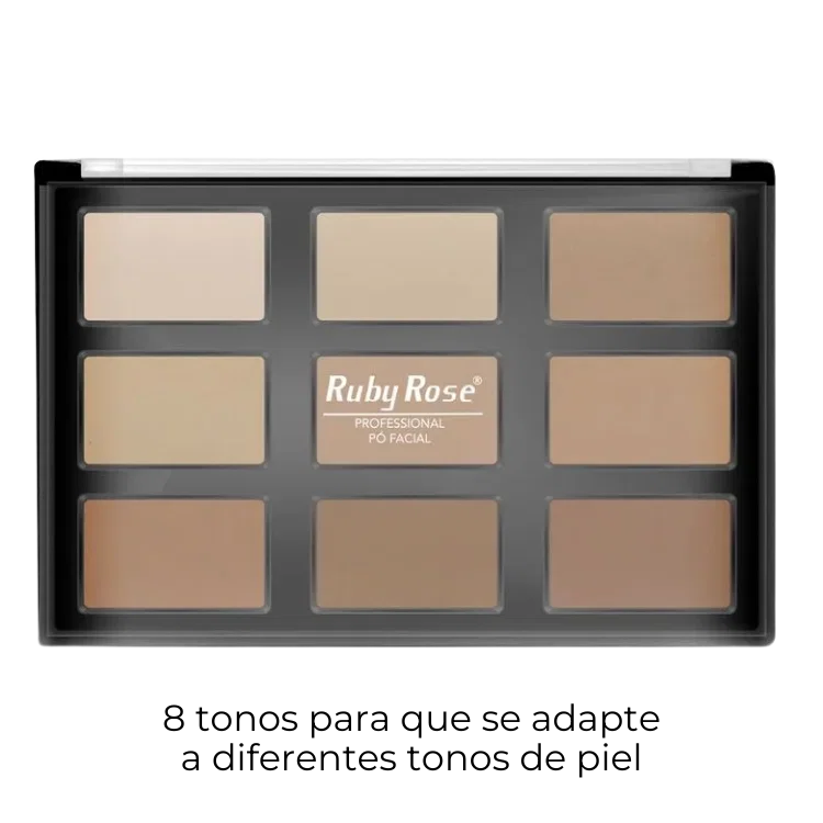 Incluye 8 tonos de polvos y 1 polvo bronceador.
