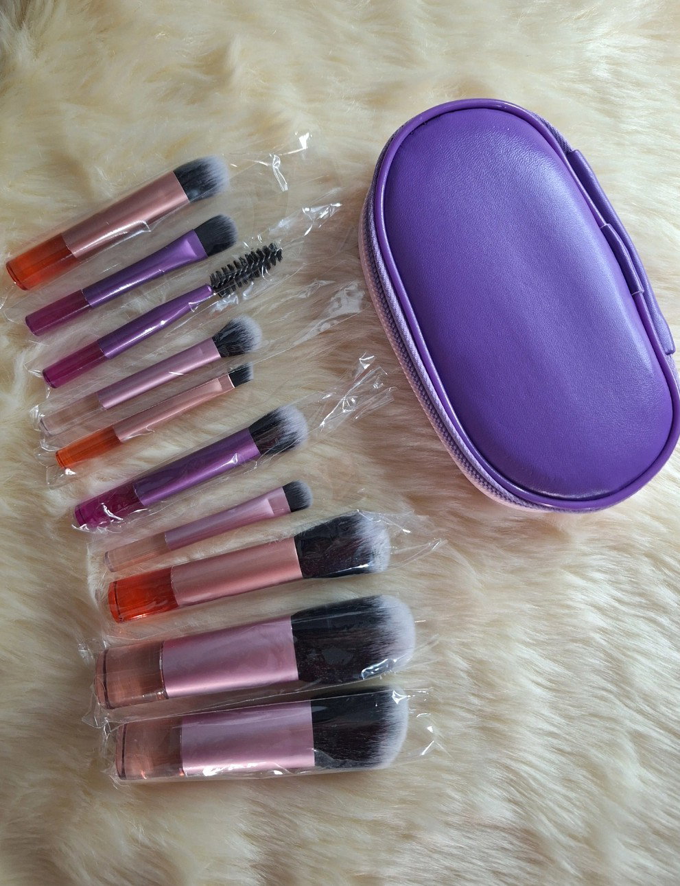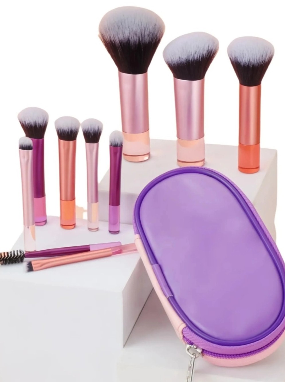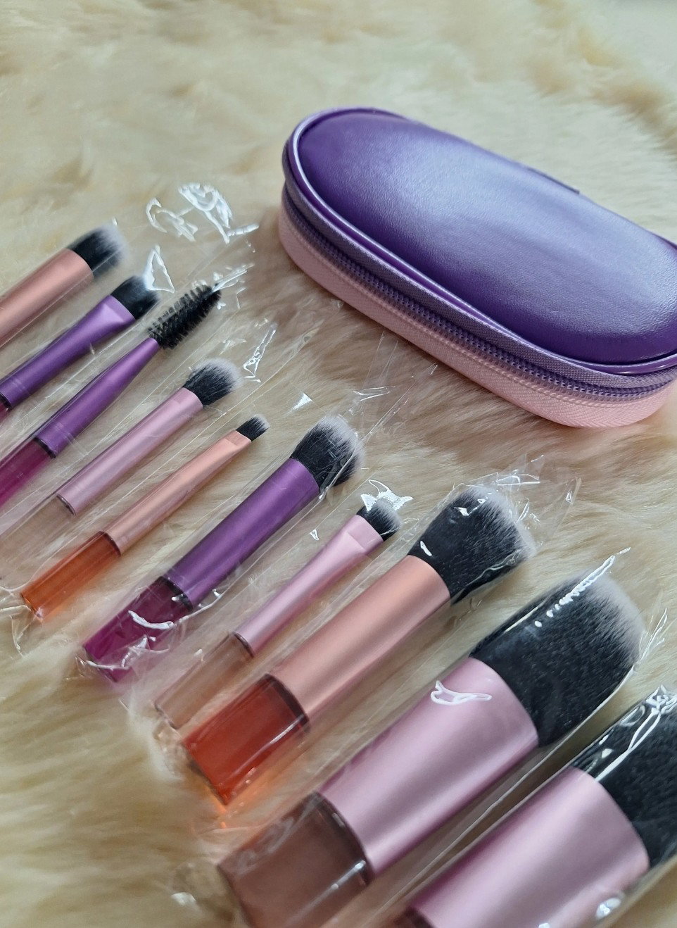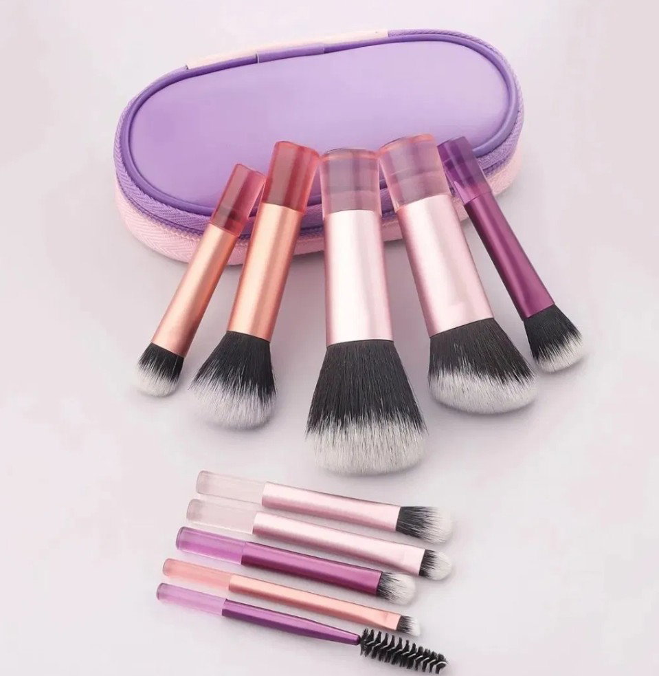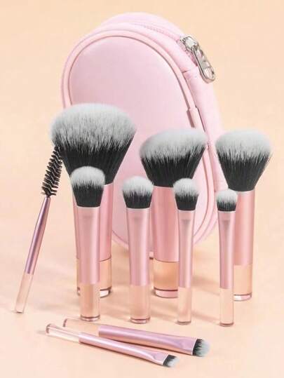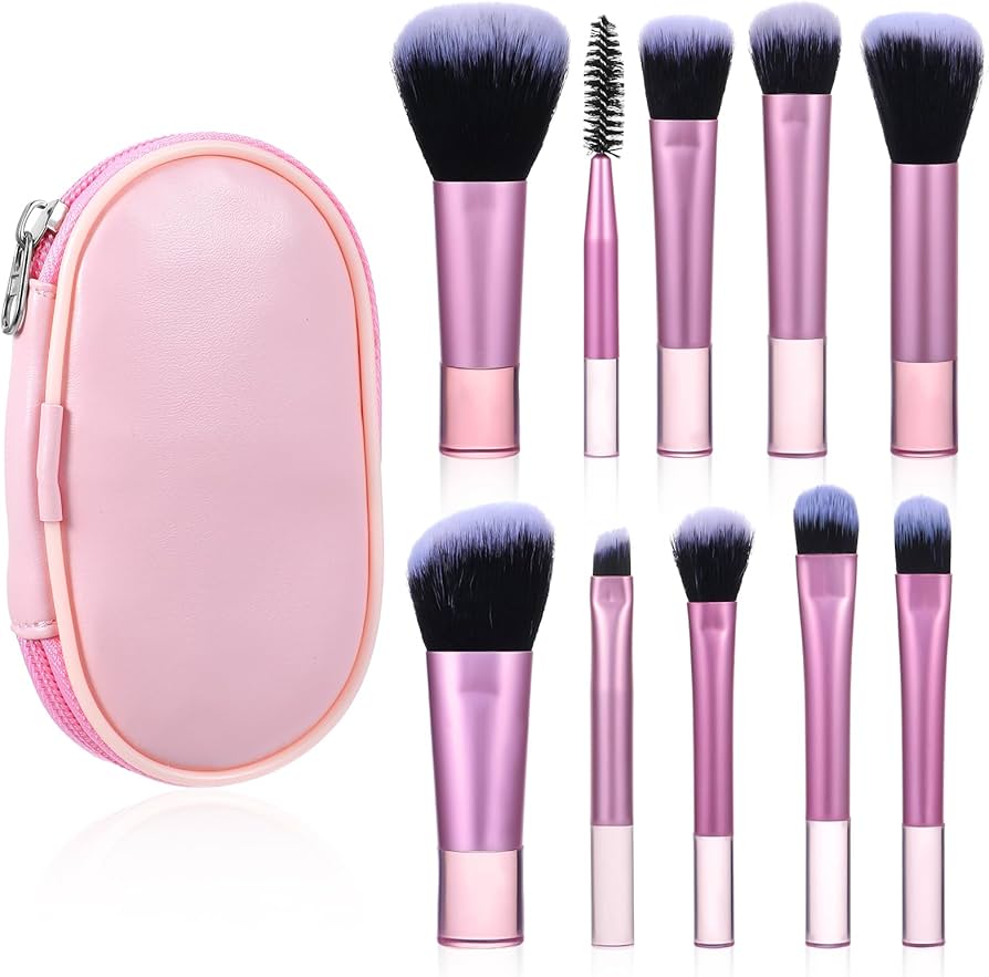 Set de 10 Brochas de Maquillaje Tamaño Mini Travel con estuche incluido.